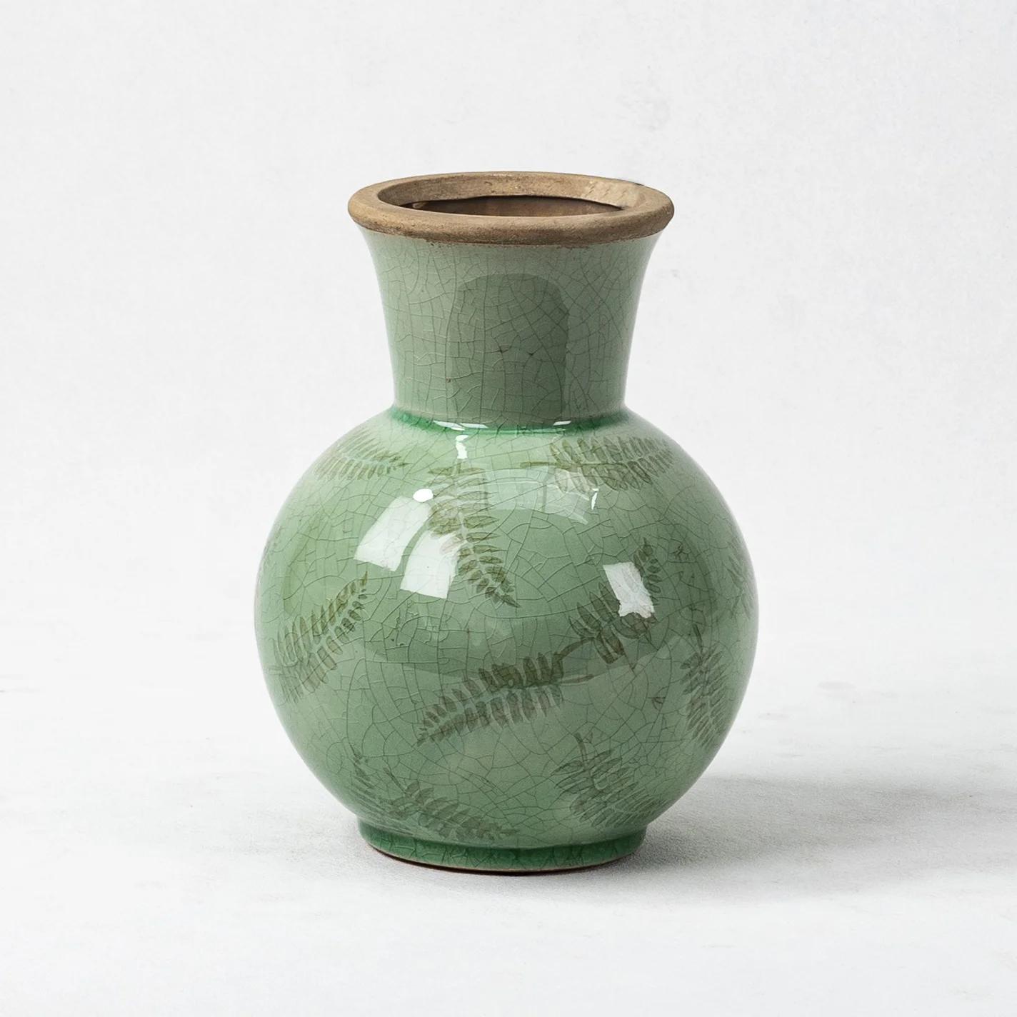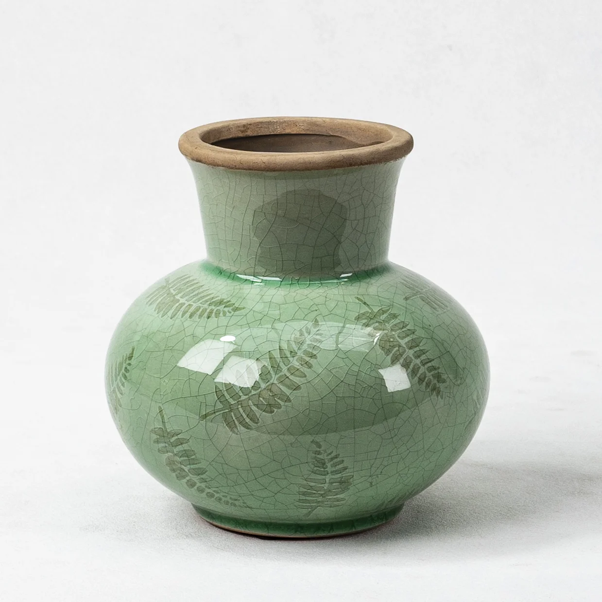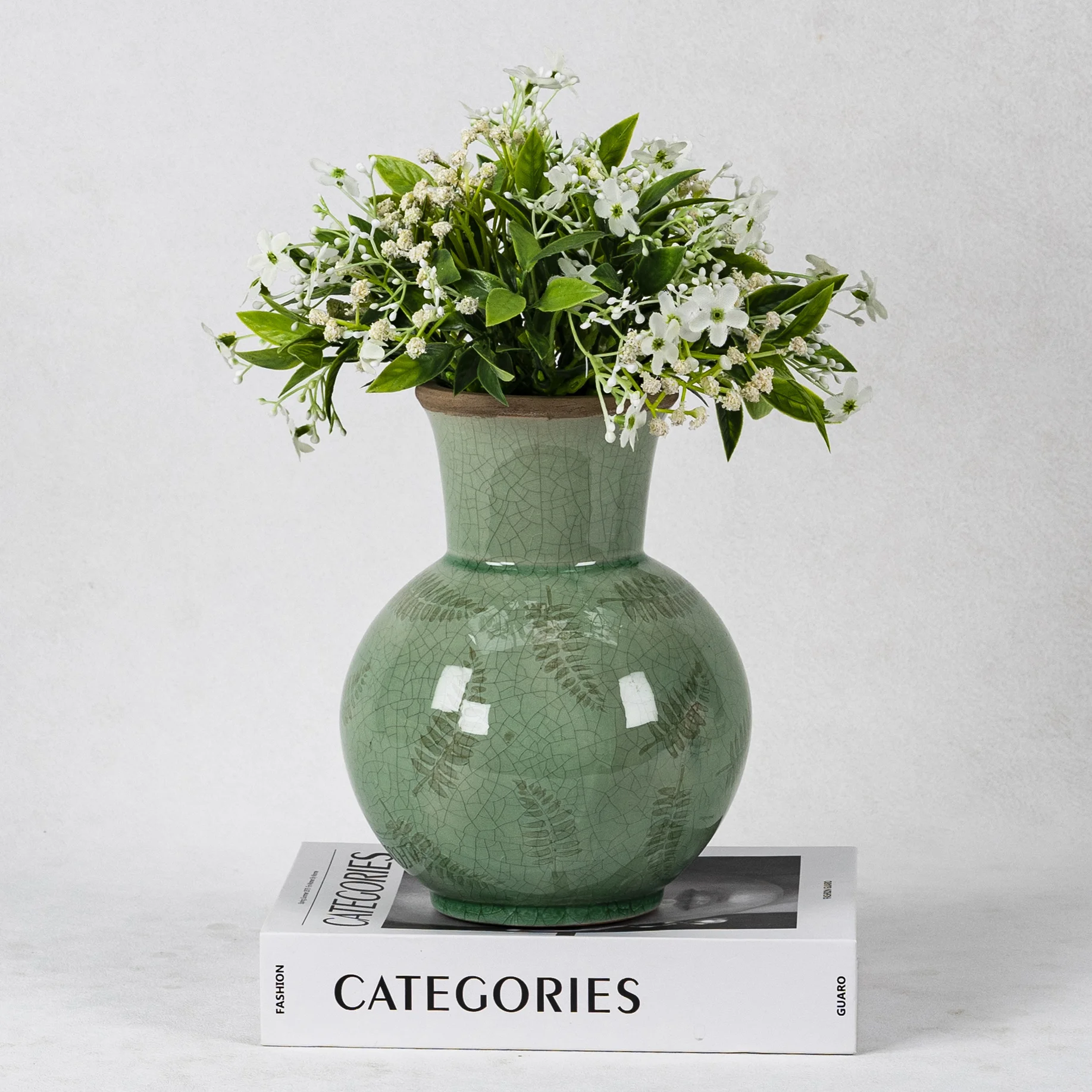 Aesthetic Appeal: These bulk ceramic flower vases also come with a light green color, fine crackle glaze, and thin fern designs for sightseeing appeal.