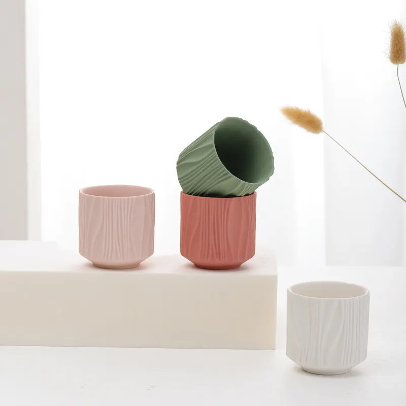 Welcome to purchase our custom candle jars, made of high-quality materials. Our luxury candle containers wholesale are designed with exquisite relief lines and high-grade Morandi colors, bringing elegant and low-key visual effects and an excellent hand-feeling experience. Practicality meets elegance in these versatile candle jars, suitable for scented candles, home decor, and so much more.