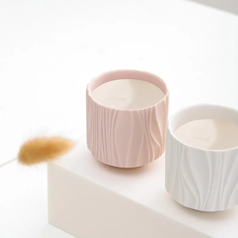 High-quality raw material: These custom candle jars are durable in ceramic or plaster, resistant to heat, and non-toxic to the environment; they hold soy wax or any scented wax with high excellence.