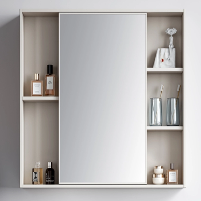 - Partitioned mirror cabinet design: The mirror cabinet adopts a central door + open grid layout on both sides. The central mirror door has built-in storage space, which is suitable for storing daily toiletries; the multi-layer shelves on both sides are classified, easy to take, and the display effect is more beautiful.
