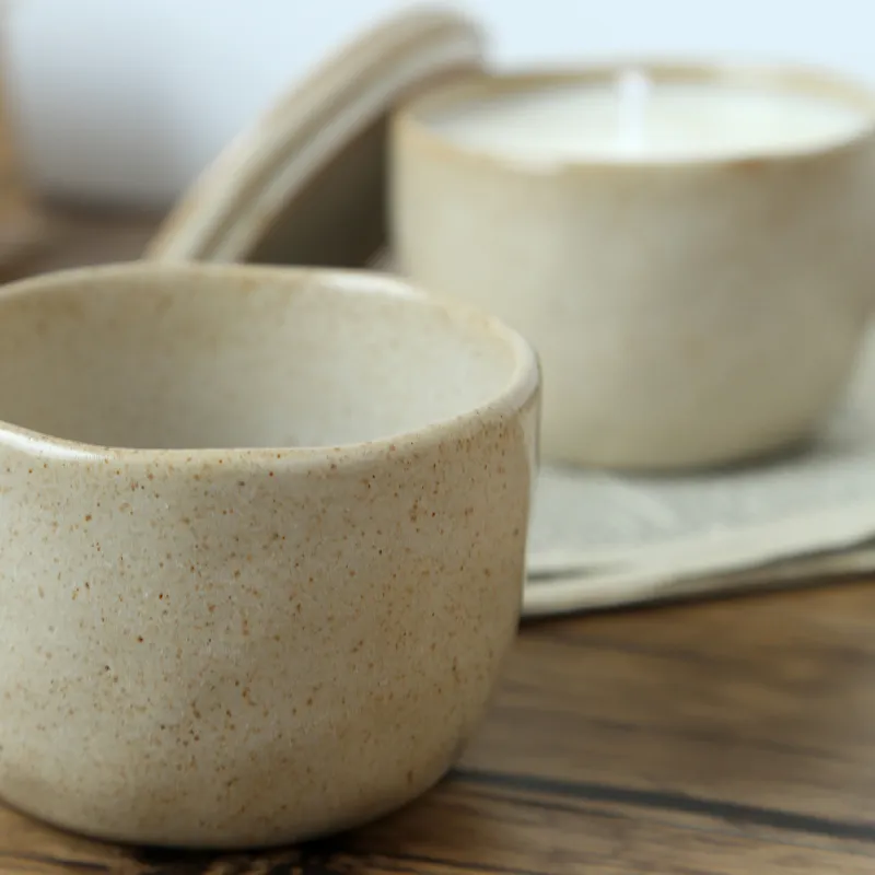 - Aesthetic Appeal: These custom ceramic jars in bulk features a trendy Wabi-sabi style with a unique speckled glaze that adds a high-end, artisanal feel to your candle brand.