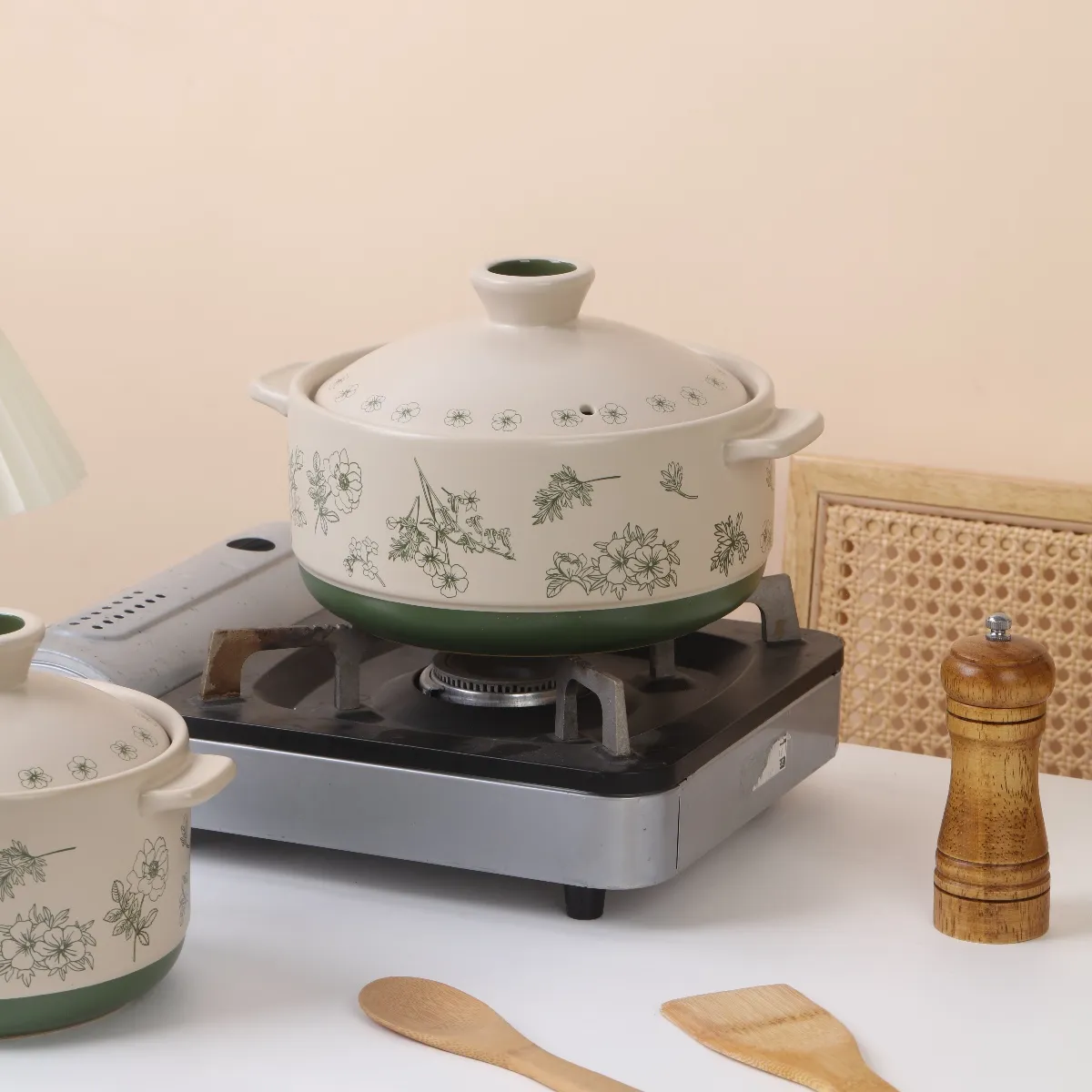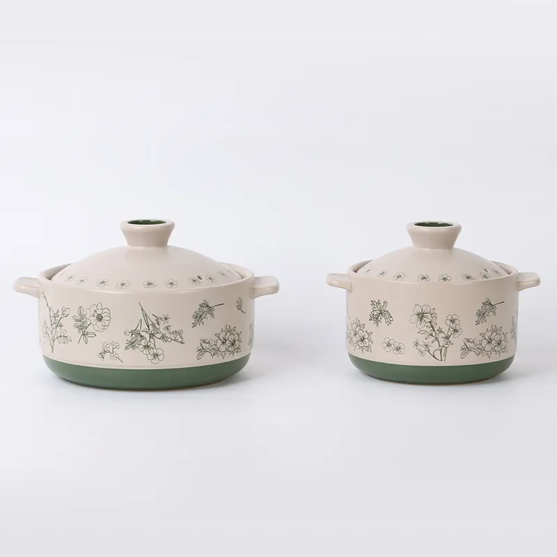 - Natural and Fresh Design: These beige wholesale casserole dishes with a green floral pattern create a warm and natural style, perfect for a variety of kitchens and dining tables.
